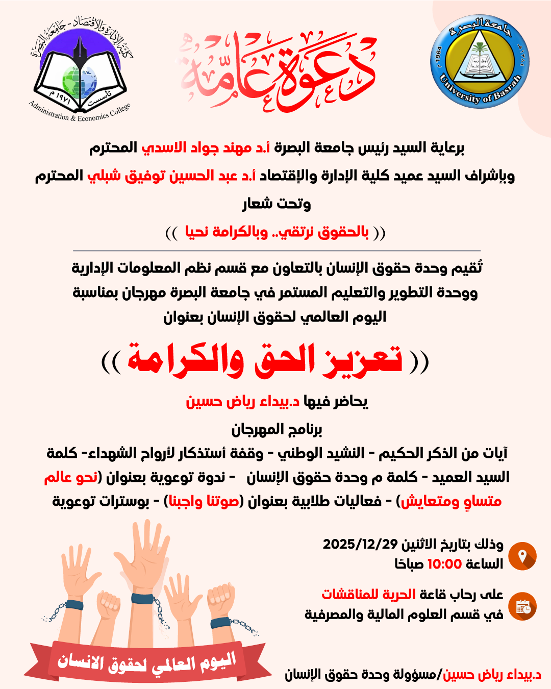 مهرجان بمناسبة اليوم العالمي لحقوق الانسان بعنوان (تعزيز الحق والكرامة)